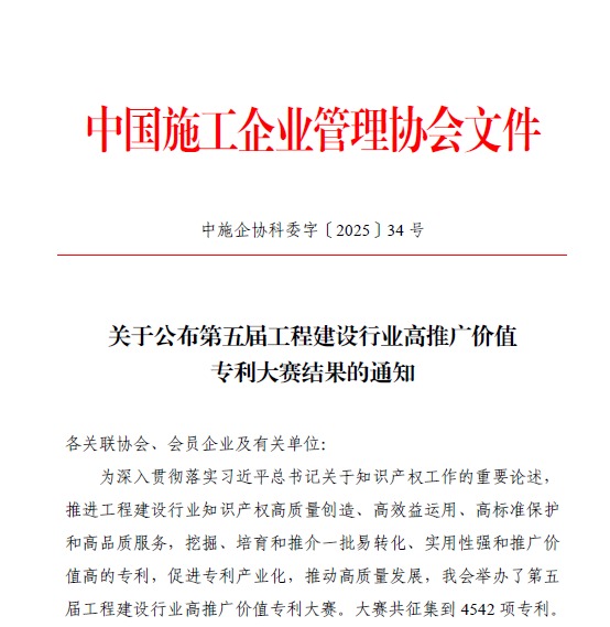 倍特建安榮獲第五屆工程建設(shè)行業(yè)高推廣價值專利大賽三等獎